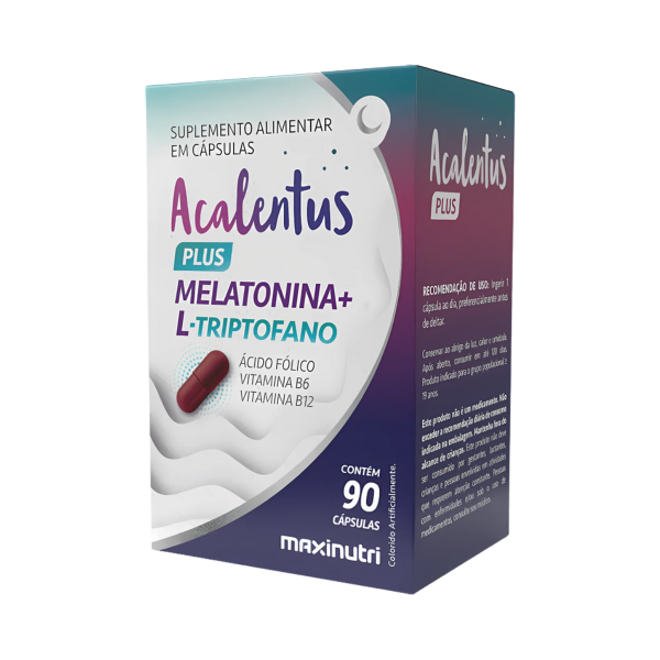 O Acalentus Plus Maxinutri é um suplemento alimentar de Melatonina em cápsulas, associado com L-triptofano, Ácido Fólico e Vitaminas B6 e B12.